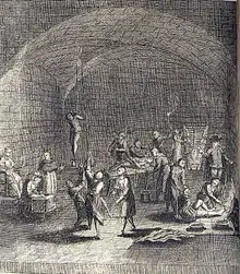 Selon l'historien Bartolomé Bennassar, la machine politique de l'Inquisition fonctionnait, dans les premières décennies, sur la base d'une « pédagogie de la peur »[18]. L'imagerie de la peur était portée par la torture et les bûchers et renforcée par le côté secret et impénétrable de la procédure.
