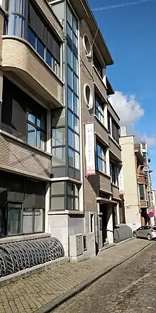 La clinique est un bâtiment associé au style paquebot[4],[5]ou Streamline Moderne en anglais. C'est un courant plutôt tardif de l'Art Déco, dans les années 1930-1940, inspiré par l'âge d'or des paquebots entre la fin des années 1930 et la deuxième guerre mondiale. Le concept est tout d'abord développé par des dessinateurs industriels en préférant les courbes aérodynamiques aux angles droits et des matériaux industriels comme le béton aux décors de l'Art Déco. Le bâtiment confronte l'horizontalité donnée par les briques et les surfaces courbes. Les fenêtres sont plutôt de longs bandeaux horizontaux et les courbes se retrouvent fréquemment associées aux grandes surfaces planes. Il s'associe à l'univers marin grâce aux hublots qui abritent les vitraux, la cage d'escalier vitrée, les Bow-windows de la façade arrière, les châssis métalliques ou encore le garde-corps de la terrasse. Le pavillon belge de l'Exposition universelle de Paris en 1937 est un bon exemple de ce courant revisité à la belge. C'est un style le plus souvent utilisé dans des bâtiments étant reliés aux modes de transports comme des gares, des aéroports, les maisons de style paquebot sont plus rares. C'est un mouvement qui a été populaire dans les designs de voitures, avions ou de l'électroménager.