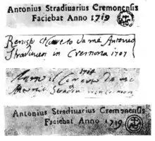- Le Messie, (1716) qui resta dans l'atelier jusqu'à la mort de Stradivari. Il fut acquis par Jean-Baptiste Vuillaume (qui en réalisa des copies), puis il le donna à son gendre, le violoniste Delphin Alard.
