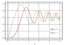 Ces fonctions sont parfois définies avec l'argument π2t2 dans les intégrales définissant S(x) et C(x). Les intégrales sont alors multipliées par et les intégrandes sont divisés par x.