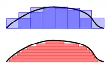 Remarque : cette construction est analogue à celle des sommes inférieures de Riemann, bien qu’elle n’envisage pas de somme supérieure ; ce fait important permet d’obtenir une classe plus générale de fonctions intégrables.
