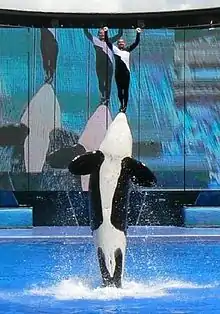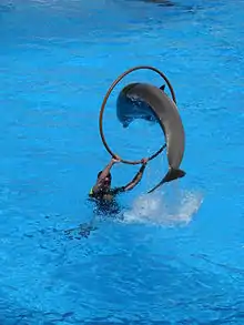 Depuis les recherches menées à la fin des années 1950 par divers instituts océanographiques et delphinariums, des dauphins ont été maintenus en captivité afin de parfaire leur étude, mais aussi afin de présenter des numéros de dressage similaires à ceux que l’on trouve dans un cirque. Les dauphins ont très vite démontré leur capacité d’apprentissage de tours et de signaux divers, basé sur le système de la récompense alimentaire d’abord, puis affective. Jamais aucun animal, malgré sa puissance et son aisance dans l’eau, n’a manifesté de comportement agressif envers l’homme sauf cas exceptionnel de défense face à une agression[1].