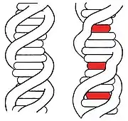 Pour que l'agent d'intercalation puisse s'insérer entre les paires de bases, celles-ci doivent être distantes d'au moins 0,3 nanomètres et celui-ci doit être plan. L'intercalation induit un changement de la structure locale du brin d'ADN, comme un "débobinage" de la double hélice ou un allongement du brin d'ADN. L'allongement est induit par réduction du tour d'hélice de l'ADN. Ces changements structuraux induisent des modifications fonctionnelles, dont souvent une inhibition du procédé de réplication, ce qui fait des agents d'intercalation des composés potentiellement mutagènes. Les composés d'intercalation dans l'ADN sont souvent pathogènes et cancérigènes, ce qui est par exemple le cas du bromure d'éthidium, l'aflatoxine ou du benzopyrène.
