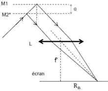 - soit en formant l'image du coin d'air (c’est-à-dire des miroirs) sur un écran grâce à une lentille convergente;