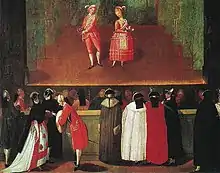 Au XVIIe siècle, sur le modèle du masque anglais ayant donnant les mascarades, il se transforme en Italie en un intermède lyrique intégrée dans les fêtes palatines. L'action souvent réaliste est associée à la pantomime, la danse et le chant. Sur le même principe, dans le théâtre espagnol baroque, il prend le nom d'entremés puis de sainete, courtes pièces satiriques et même irrévérencieuses en un acte, développés en zarzuelas encore à la mode au XXe siècle.