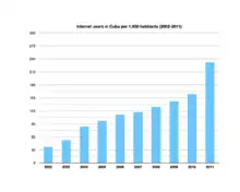 L'accès à Internet à Cuba est caractérisé par un faible taux de connexion, un débit limité, un coût élevé et une censure active[2]. Internet est introduit à la fin des années 1990, mais en raison du manque de financement, des restrictions gouvernementales et de l'embargo des États-Unis contre Cuba, son usage évolue peu. À partir de 2007, la situation commence à s'améliorer, avec l'ouverture des premiers cyber-café[3]. En 2014, les performances technologiques et le taux de pénétration de 30 pour cent[4] étaient en augmentation.