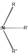 | Inversion d'une amine. Les deux points représentent le doublet non liant sur l'atome d'azote.. | ||