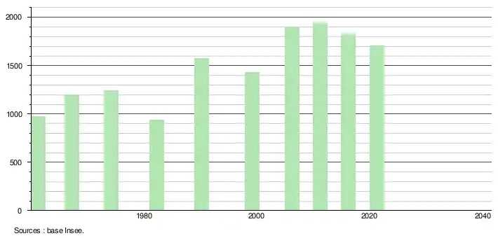 L'évolution du nombre d'habitants est connue à travers les recensements de la population effectués dans la commune depuis 1961, premier recensement postérieur à la départementalisation de 1946. À partir de 2006, les populations légales des communes sont publiées annuellement par l'Insee. Le recensement repose désormais sur une collecte d'information annuelle, concernant successivement tous les territoires communaux au cours d'une période de cinq ans. Pour les communes de moins de 10 000 habitants, une enquête de recensement portant sur toute la population est réalisée tous les cinq ans, les populations légales des années intermédiaires étant quant à elles estimées par interpolation ou extrapolation[20]. Pour la commune, le premier recensement exhaustif entrant dans le cadre du nouveau dispositif a été réalisé en 2006[21].