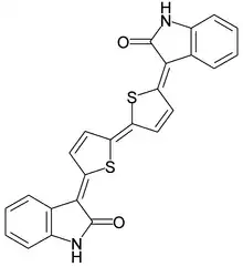 La dimérisation de l'isatine avec KBH4 dans le méthanol produit l'indirubine[35]. C'est le pendant rouge de la teinture d'indigo, qui présente également une grande cytotoxicité.