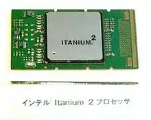 | Itanium 2 MP 1,66 GHz 6 Mo | 1 | 1,67 GHz | 667 MT/s | 10 x | 32 Kio | 256 Kio | 6 Mio | 130 W | PAC-611 | 07/2005 |