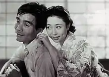 Avec Nobuko Otowa dans Histoire d'une épouse bien-aimée (1951).