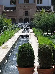 ![]() Canaux d’irrigation des parterres, Alhambra de Grenade, Espagne. |