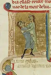 Cette situation est source de détresse et de bonheur à la fois pour l'amant, car, comme le remarque le médiéviste Michel Zink, « l'amour tend vers son assouvissement et en même temps le redoute, car il entraînera sa mort en tant que désir »[11]. Il ressent ce qu'on appelle alors le joi, sentiment ambivalent entre la souffrance et le plaisir, comme l'écrit Jaufré Rudel :