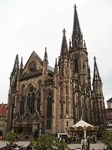 Mulhouse : temple protestant Saint-Étienne (1858-1869), vu de la place de la Réunion)