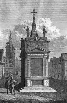 En 1605, la pyramide antijésuite de la maison Châtel est détruite. À son emplacement, le prévôt des marchands François Miron fait construire la fontaine des Barnabites.