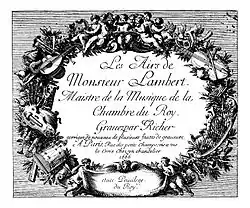 - Michel Lambert. Les Airs... gravez par Richer. Paris : Guillaume de Luyne, 1660. RISM L 381 à 384[3].