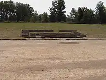 Vue de l'exèdre où se tiennent les hellanodices pour surveiller le stade.