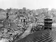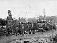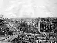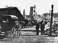 Un grand incendie ravage la ville de Trois-Rivières le 22 juin 1908, et les dégâts sont considérables[40],[41]. Les mesures d'urgence sont déclarées, la quasi-totalité des bâtiments patrimoniaux de Trois-Rivières est détruite, 215 foyers et commerces sont rasés par les flammes et l'essentiel du centre-ville de Trois-Rivières, qui comptait alors autour de 12 000 habitants, prend les allures de zone sinistrée[41]. Le maire de Trois-Rivières, François-Siméon Tourigny, reste optimiste et pense déjà à la reconstruction à venir de la capitale de la Mauricie, déclarant à la suite de la tragédie : « Là où de vieux édifices ont été détruits s'élèveront de nouvelles constructions édifiées d'après les plans les plus modernes. Le désastre a été un dur coup pour nous, mais ce sera peut-être finalement un bien pour la ville. Nous essaierons maintenant de faire de Trois-Rivières une cité moderne »[41]. Le Conseil municipal entame les planifications de la modernisation « des Trois-Rivières », refait le tracé de ses rues, bétonnise ses trottoirs, élargit ses avenues principales et change ses lois en ce qui a trait aux règlements sur les matériaux à utiliser lors de la construction d'édifices et les normes à respecter quant à l'attribution de contrats[41]. La consternation de cette « année noire » pour les trifluviens laisse graduellement place à une frénésie de la reconstruction pour la décennie à venir[41]. L'industrialisation rapide de Trois-Rivières, qui est appelé à devenir la capitale mondiale du papier journal, se met en branle[42],[43].