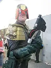 Judge Dredd est un personnage de fiction de bande dessinée créé par le scénariste John Wagner et le dessinateur Carlos Ezquerra. Les aventures du personnage débutent en 1977 dans la revue britannique de science-fiction pour adultes 2000 AD ; par la suite le personnage apparaît dans la revue Judge Dredd Megazine (1990), dans une série qui lui était entièrement consacrée.