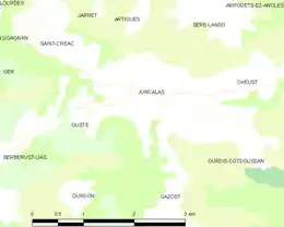Les communes les plus proches[Note 1] sont[4] : Ousté (1,2 km), Cheust (1,2 km), Sère-Lanso (1,8 km), Ourdis-Cotdoussan (1,9 km), Saint-Créac (2,2 km), Artigues (2,3 km), Ourdon (2,4 km), Gazost (2,5 km).
