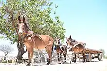 Utilisation pour le transport de briques d'ânes croisés avec des chevaux, jugés plus résistants.