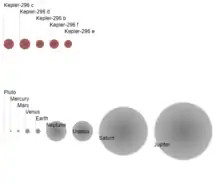 Une image représentative de la taille des différentes planètes du Système solaire et du système de Kepler-296