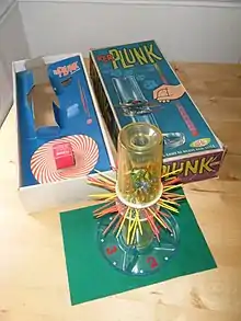 KerPlunk est un jeu de société d'abord commercialisé par la firme Ideal Toy Company en 1967[1]. Le jeu se compose d'un tube en plastique transparent, d'un ensemble d'une trentaine de tiges en plastique jaune et rouge, et de quelques dizaines de billes. La base se compose de quatre réceptacles numérotés. Les pailles sont passés à travers les trous de part et d'autre du tube pour former un treillage. Les billes sont ensuite placées dans la partie supérieure du tube et maintenues en place par les pailles enchevêtrées[2]. Le nom du jeu est une onomatopée anglomorphe évoquant le bruit des billes tombant à la base du tube au cours de la partie.