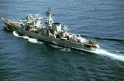 | Armement | 2 × missiles anti-sous-marins SS-N-14 Silex (2 × 4) 2 × lanceurs de missiles sol-air SA-N-3 Goblet (80 missiles) (2 × 2) Lanceurs de missiles sol-air SA-N-4 Gecko (40 missiles) 2 × canons AK-726 de 76 mm (2 × 2) 4 × CIWS de 30 mm AK-630 2 × tubes lance-torpilles PTA-53-1134B de 533 mm (2 × 5) 2 × lance-roquettes anti-sous-marins RBU-6000 2 × lance-roquettes anti-sous-marins RBU-1000 |