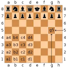 - avancée de pion sur un flanc où le joueur a moins de pions que son adversaire ; l'objectif est d'affaiblir la chaîne de pions adverse.