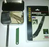 - Un briquet, des allumettes imperméables, ou un « firesteel » (marque déposée).