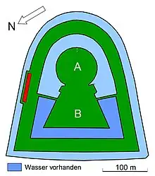 La zone centrale de la tombe, qui fait face au sud-est, a une forme en "trou de serrure" typique. Elle se compose d'une partie ronde (後円部) connectée à une partie triangulaire (前方). L'ensemble fait 190 m de long, ce qui donne avec les tranchées doubles une longueur totale de 330 m. L’étude du Nihon shoki, de l'Engishiki et d'autres textes font penser que l'empereur Keitai y a été probablement enterré.