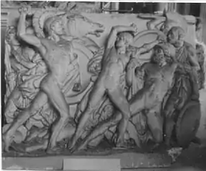 - Le Pavage et le Gaz, 1875, haut-relief, réalisé pour un dessus de porte placé dans l'avant-foyer de l’Opéra Garnier à Paris. La maquette au tiers, en plâtre, est conservée au musée d’Orsay[11].