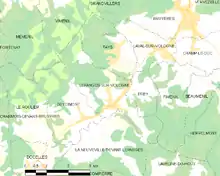 L'occupation des sols de la commune, telle qu'elle ressort de la base de données européenne d’occupation biophysique des sols Corine Land Cover (CLC), est marquée par l'importance des forêts et milieux semi-naturels (55,6 % en 2018), une proportion identique à celle de 1990 (55,6 %). La répartition détaillée en 2018 est la suivante : forêts (55,6 %), prairies (23,2 %), zones urbanisées (8,9 %), zones agricoles hétérogènes (8,7 %), terres arables (3,6 %)[15]. L'évolution de l’occupation des sols de la commune et de ses infrastructures peut être observée sur les différentes représentations cartographiques du territoire : la carte de Cassini (XVIIIe siècle), la carte d'état-major (1820-1866) et les cartes ou photos aériennes de l'IGN pour la période actuelle (1950 à aujourd'hui)[Carte 3].