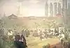 L’affranchissement des paysans russes Le travail libre − base des États | Zrušení nevolnictví na Rusi Svobodná práce - osnova národů | 1914 | 810 × 610 | 1861 | Représente une foule de paysans, rassemblée sur la Place Rouge à Moscou, vient d'entendre la lecture de l’ukase d’Alexandre II de Russie qui lui rend sa liberté. |
