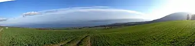 La région habitée est principalement constituée de champs, de vignobles et de bois, est tournée vers le sud-ouest et, hors côté lac, est ceinte complètement par la forêt. Sur les Hauts de la Béroche, par beau temps, s'ouvre un immense panorama sur les Alpes, qui va à l'est du Säntis, près de la frontière autrichienne, jusqu'au massif du Mont-Blanc au sud.