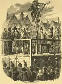 - Sous le règne de Jacques Ier, l'élite des catholiques décide de supprimer en même temps le roi, les lords et des membres des Communes réunis dans la Chambre des lords à la faveur d'un attentat. Privés de leurs représentants, une fois les enfants du roi enlevés, les protestants n'auraient guère résisté au soulèvement provoqué par les catholiques, soutenus par les Espagnols venus de Flandre. Guy Fawkes, gentilhomme aguerri par la campagne de Flandre, expert en sape, fut chargé de procéder à la mise en place de la mine. Une cave fut louée en face du lieu de réunion, mais un local fut découvert qui se trouvait au sous-sol de la Chambre des lords. Des barils de poudre, dissimulés par des fagots, y furent entassés. Fawkes devait allumer la mèche. Mais il fut arrêté le 5 novembre 1605 et supplicié. Le complot avait été découvert parce que les conjurés avaient mis dans la confidence les amis et relations dont ils avaient besoin pour le soulèvement qui devait suivre l'explosion. L'un de ces initiés, Tresham, saisi de scrupules, avait, par lettre, averti Monteagle, son parent, de ne pas se rendre au Parlement le jour de l'ouverture. Intrigué, Monteagle avertit les ministres, qui déclenchèrent immédiatement la répression. L'évènement est connu sous le nom de « Gunpowder plot ».