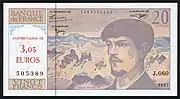 Le , la Banque de France a créé un billet de 20 francs français, à l'effigie du compositeur. Il a été utilisé du au , date de la la mise en circulation de l'euro[5].