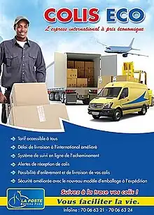 - Les colis postaux: C’est le service de collecte, d’acheminement et de livraison d’envoi d’un poids relativement élevé à l’intérieur du Burkina Faso et à destination de tous les pays membres de l’union postale universelle. Le poids maximum accepté atteint 30kg au Burkina Faso et dans la plupart des pays correspondants. Il permet aux clients de faire venir ou d’expédier des marchandises tel que les effets d’habillement, les pièces détachées, les produits alimentaires, les appareils électroménagers et divers