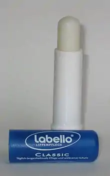 Aujourd'hui, le mot labello est synonyme de soin pour lèvres dans la plupart des pays européens étant donné que ce produit a une position de monopole[réf. nécessaire]. Le mot labello est également employé parfois par antonomase pour parler d'un baume à lèvres d'une marque différente.