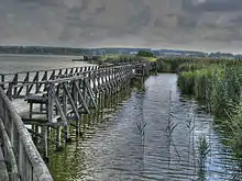 L'accès direct au lac est rendu impossible par la ceinture végétale qui l'entoure. Un chemin piétonnier en bois d'environ 1,5 km de longueur a été aménagé à partir du musée. Il permet de se rendre jusqu'à l'eau en observant les roselières.