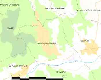 La ville est située au confluent du Bitoulet (9,6 km), affluent rive droite (donc au Nord) du fleuve côtier l'Orb, et de ce même fleuve[1]. Lamalou est la commune la plus peuplée du canton de Saint-Gervais-sur-Mare dont elle fait partie.