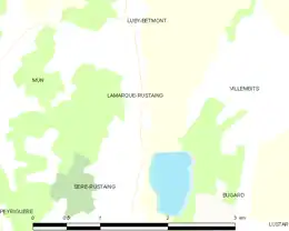 Les communes les plus proches[Note 1] sont[3] : Villembits (1,5 km), Sère-Rustaing (1,9 km), Luby-Betmont (1,9 km), Mun (2,1 km), Bugard (2,8 km), Vidou (3,2 km), Lustar (3,4 km), Osmets (3,8 km).