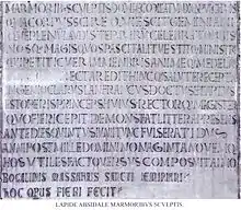 Lanfranco est également nommé dans une épigraphe gravée sur une plaque de marbre placée à l’extérieur de la cathédrale, sur l’abside principale. Le texte de cette épigraphe est généralement reconnu comme étant du même Aimone, ce qui en fait un document d’une grande importance pouvant être considéré comme un de plus anciens témoignages de la construction de la cathédrale[10].
