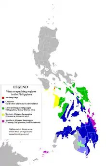 Régions des Philippines où les langues bisayas sont prédominantes.