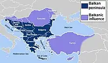 - pays partiellement inclus dans les Balkans : Croatie, Roumanie, Serbie, Slovénie et Turquie.