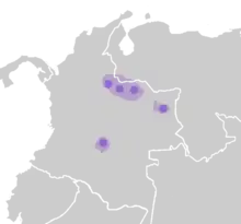 Localisation originelle, en clair, et actuelle, en foncé, des langues guahibanes.