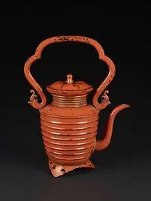 Dans la période Muromachi (1336-1573), le shishihai-togidashi maki-e, le plus compliqué des techniques maki-e, a été développé, ainsi que le taka maki-e, une nouvelle technique utilisant des meules et des poudres d'argile[14],[13],[15],[16]. La laque japonaise était abondamment exportée vers l'Asie de l'Est voisine, l'Asie du Sud-Est et même en Inde. La laque (en particulier japonaise) était connue dans les tribunaux indiens et figurait parmi les cadeaux offerts par les Européens aux dirigeants locaux. La laque japonaise était bien connue de Sir Thomas Roe, par exemple, comme un type de cadeau approprié à l'empereur Jahângîr, et il note en 1616 que les raretés de la Chine et du Japon étaient hautement désirables en Inde[16],[17],[15].