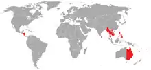 On la rencontre aussi dans les eaux du Nicaragua, du Salvador et du Mexique[1].