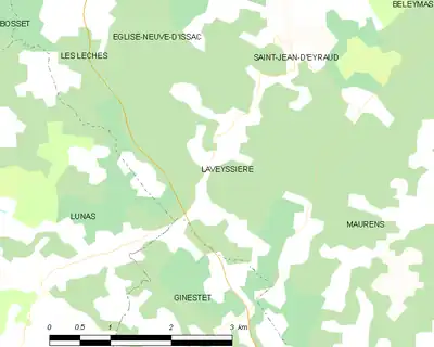 En 2018, année précédant la création de la commune nouvelle d'Eyraud-Crempse-Maurens, Laveyssière était limitrophe de six autres communes.
