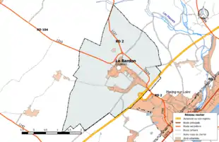 La commune est traversée par l'autoroute A10, qui constitue la limite séparative sud de la commune, et deux routes départementales à faible trafic[Note 4] : la RD 2 (1 127 véhicules/jour en 2014), qui relie Baule à Épieds-en-Beauce[34] et la RD 104 (1 310 véhicules/jour), qui relie Le Bardon à Cravant[34].
